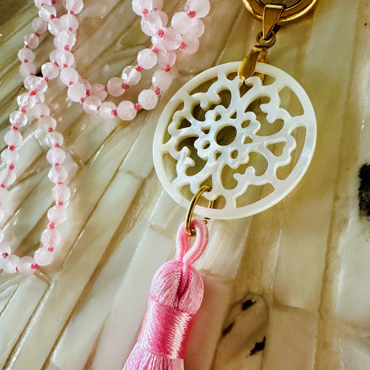 "Perlmutt-Mandala mit Quaste" mit Rosenquarz Edelsteinkette