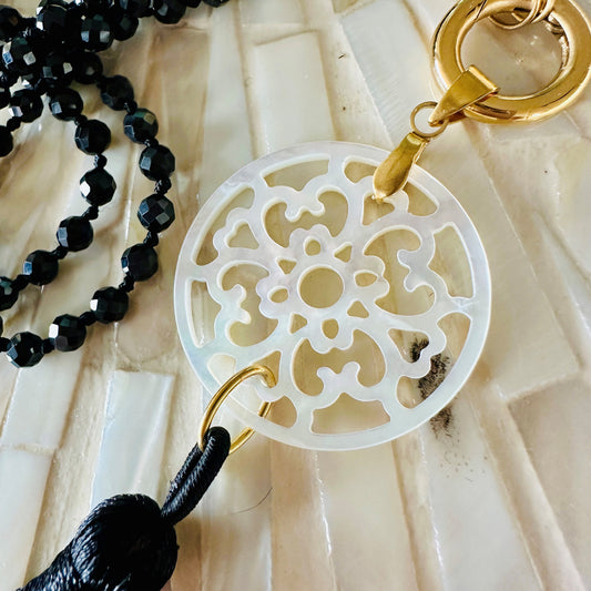"Perlmutt-Mandala mit Quaste" mit Spinell Edelsteinkette
