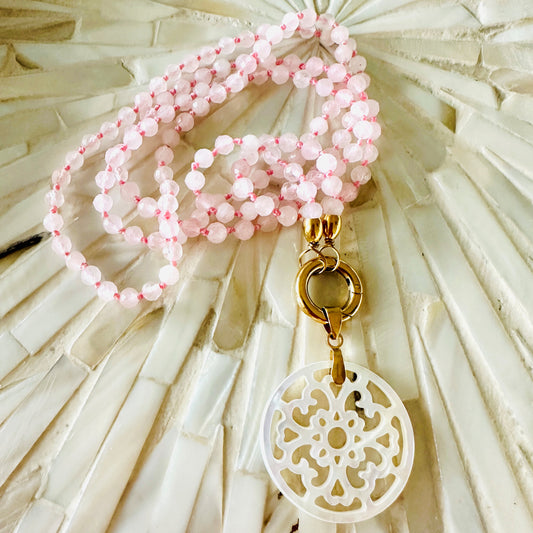 "Perlmutt-Mandala" mit Rosenquarz Edelsteinkette