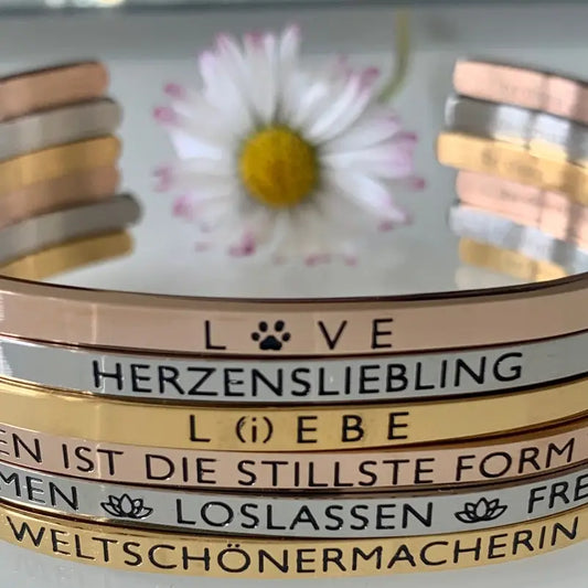 from 49 reviewsSuper schöne Armreifen mit tollen Sprüchen/Mantras. Es ist inzwischen mein 4, ich liebs, auch toll als Geschenk!!