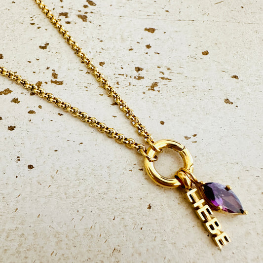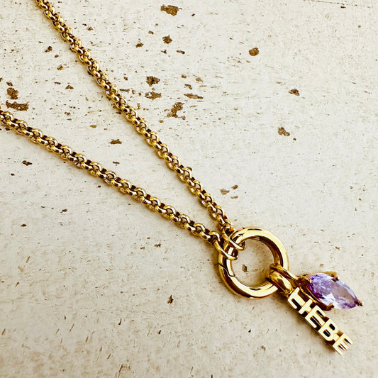 Charmkette mit Karabiner - LIEBE & Geburtstein Februar Charms