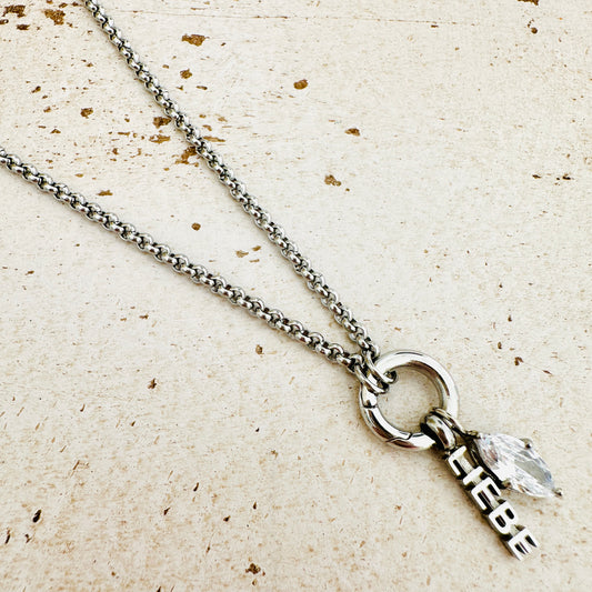Charmkette mit Karabiner - LIEBE & Geburtstein April Charm