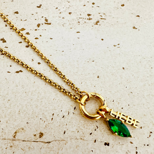 Charmkette mit Karabiner - LIEBE & Geburtstein Mai Charm