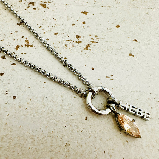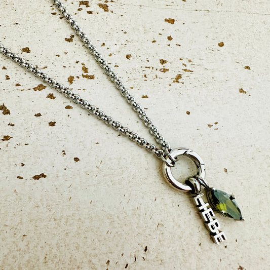 Charmkette mit Karabiner - LIEBE & Geburtstein August Charm