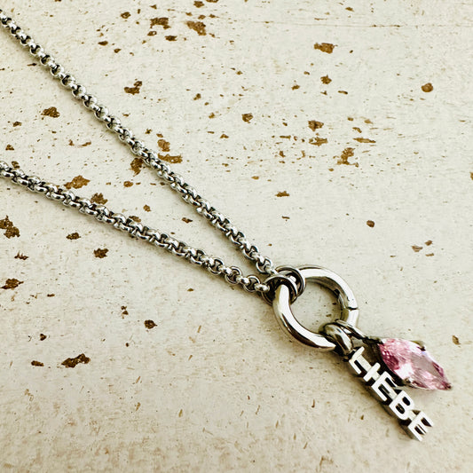 Charmkette mit Karabiner - LIEBE & Geburtstein Oktober Charm