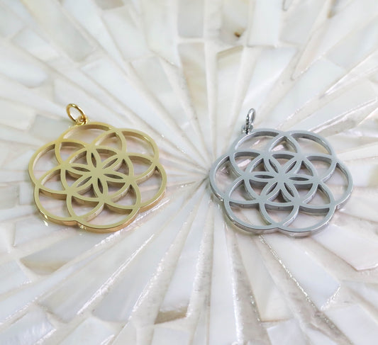 Seed of Life Anhänger - mit Aquamarin Edelsteinkette