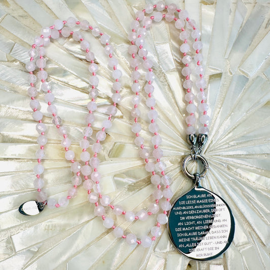 ICH GLAUBE AN Anhänger - mit Rosenquarz Edelsteinkette