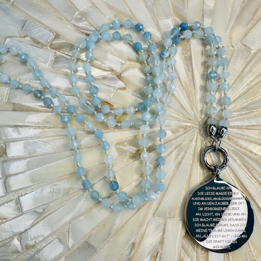 ICH GLAUBE AN - Anhänger mit Aquamarin Edelsteinkette