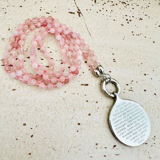 DIE LIEBE IST Anhänger - mit Rosenquarz Edelsteinkette