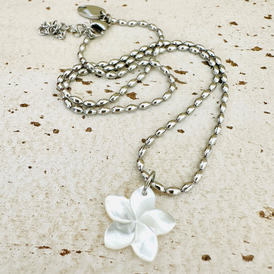 Perlmutt Frangipani mit gehämmerter Kette