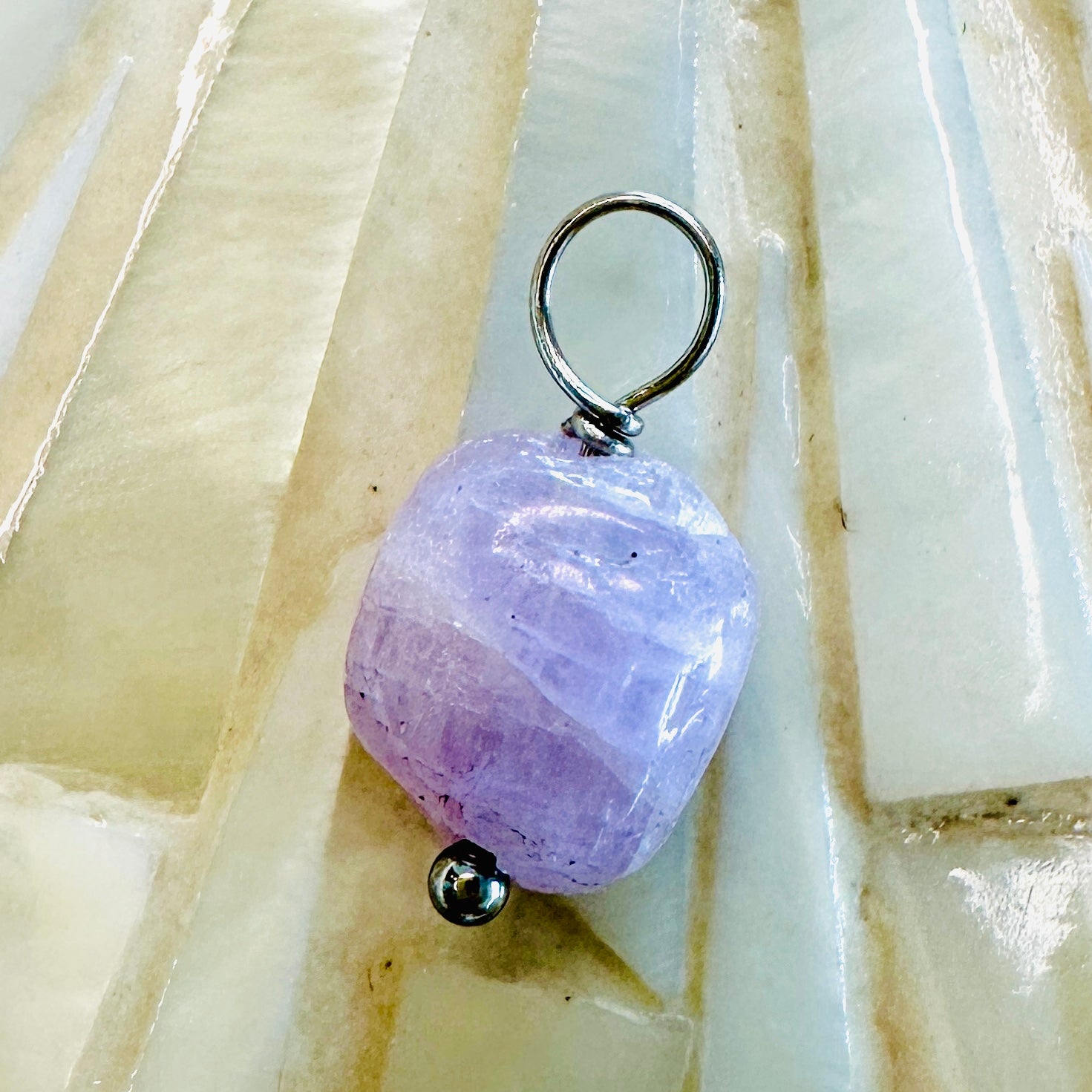 Unser Geburtsstein-Charm Juni – Kunzit steht für Liebe, Mitgefühl und emotionale Heilung.