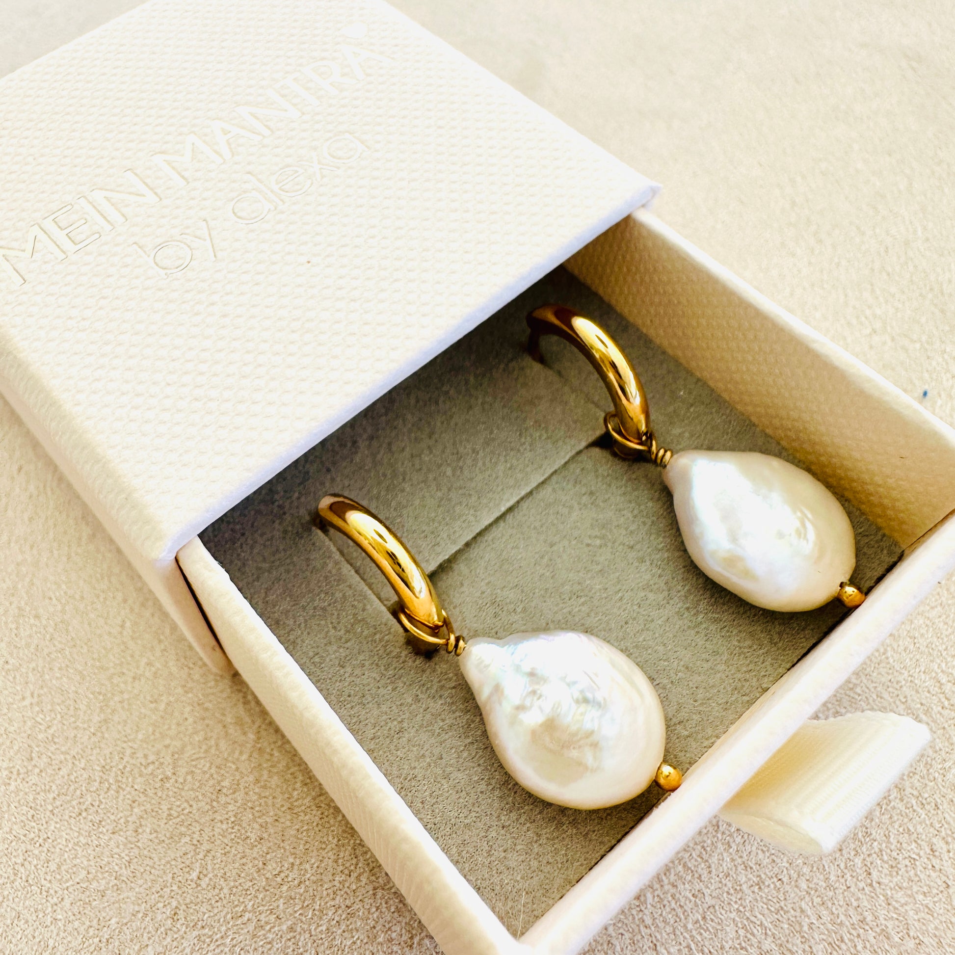 Entdecke die einzigartige Schönheit unserer Ohrringe in Edelstahl in der Farbe Gold, verziert mit einer mittleren Barockperlen. Diese außergewöhnlichen Perlen stehen unter dem Motto "Perfectly Imperfect" – sie werden für ihre Unvollkommenheit geschätzt und sind ein Symbol für Individualität und Einzigartigkeit.